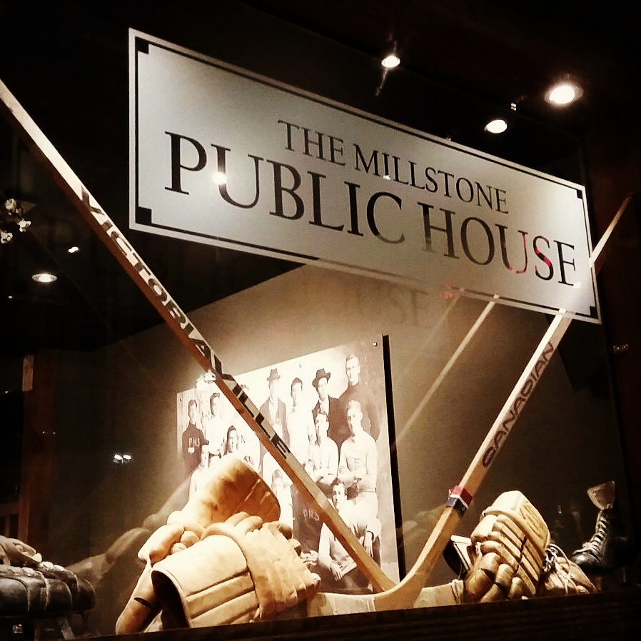 The Millstone is divided into three spaces that allow for both a cosy, casual dining experience and a more pub/sports bar feel. The front room has a lovely central fireplace and is flanked on 2 sides by windows. The bar features seven (!) televisions and an amazing bar top made from 317-year-old wood brought all the way from Golden, BC. The third room can be used for private functions and serves as over-flow on the weekends.