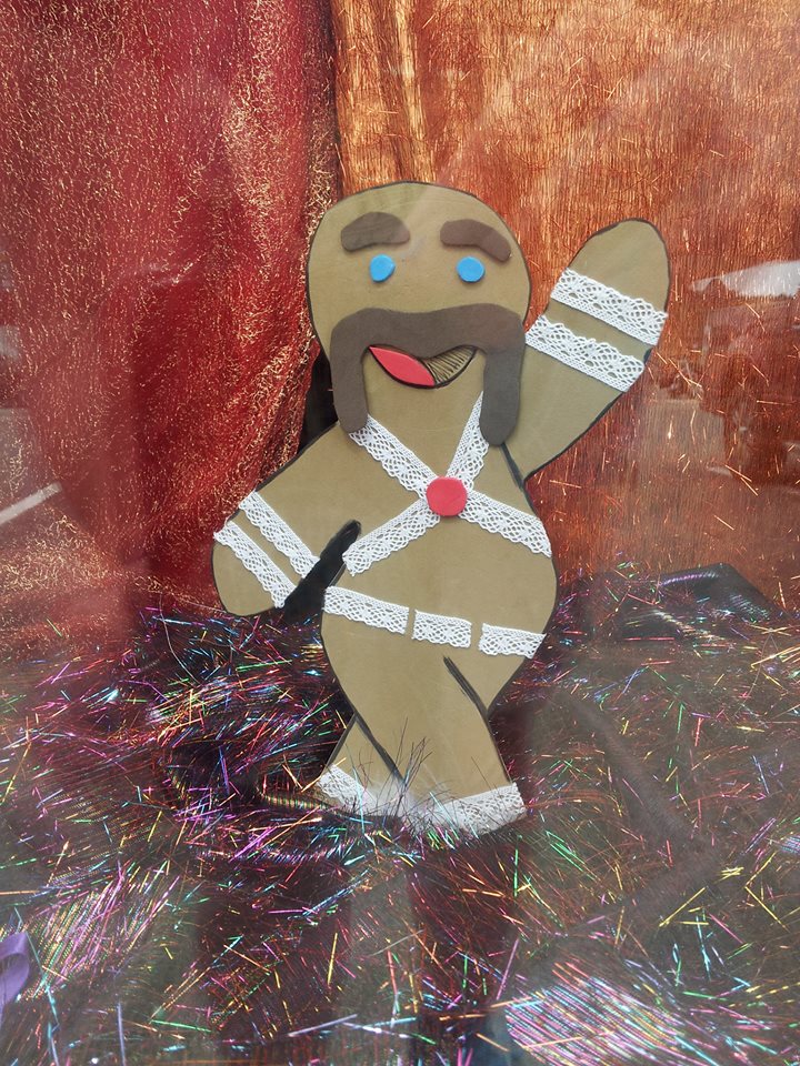 That display has gone away only days before the big event. Unofficially , word on the street say that it was due to being found, ‘offensive’. In the end businesses can do what they want. But in this small community be sure to questioned on why.